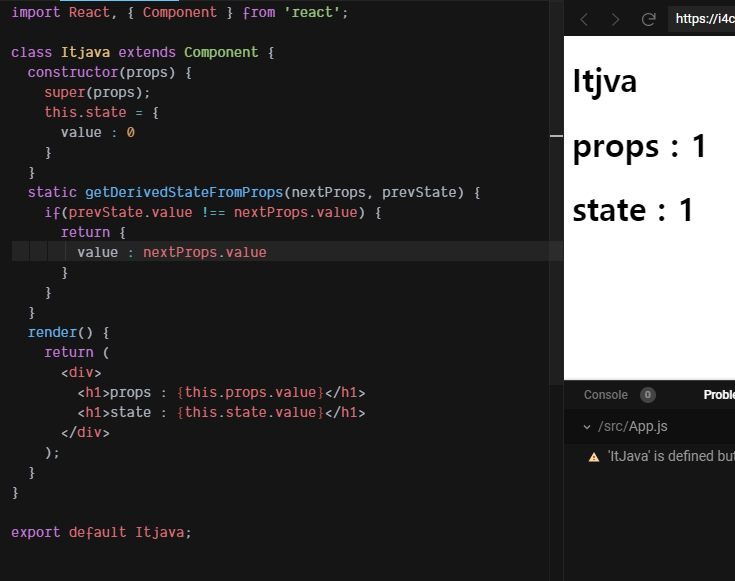 getDerivedStateFromProps를 해줘야 하는데 이건 static으로 선언 해줘야 합니다.