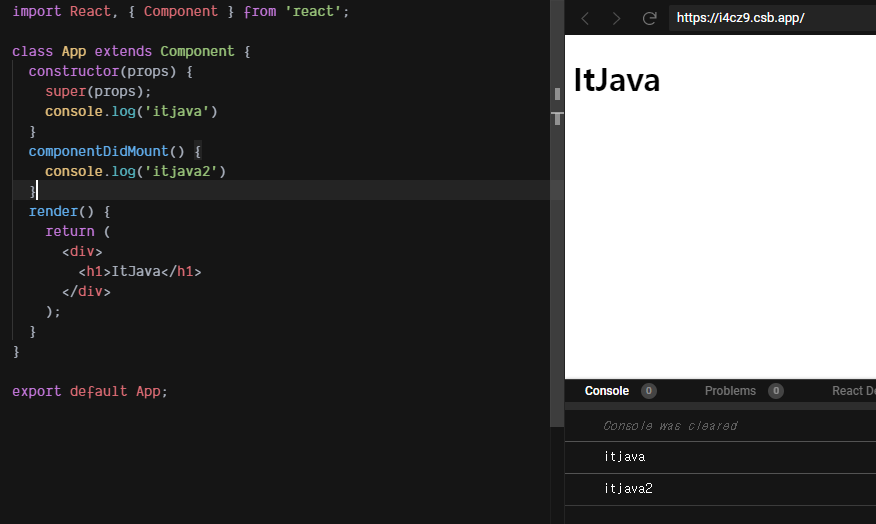 이렇게 할 경우 버튼 클릭 하다가 카운터가 10이 넘어가면 ItJava 컴포넌트가 사라지고 사라지면서 componentWillUnmount가 호출 된다.